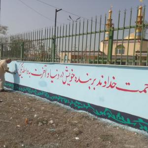 ۲.تکمیل رنگ آمیزی و دیوار نویسی دیوار مسجد مسکن مهر اسلامشهر